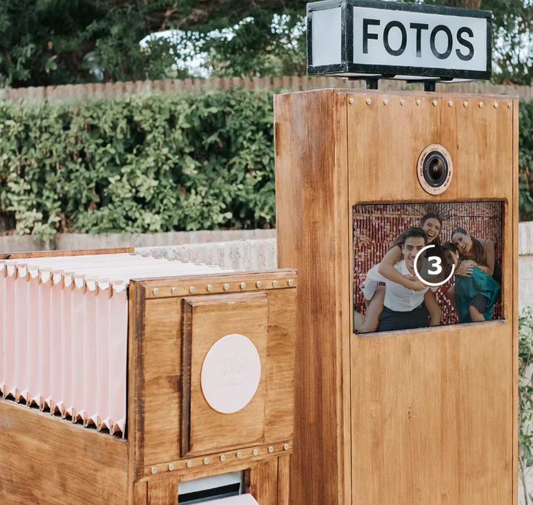 El Fotomatón Vintage es una de las opciones más deseadas por el público. Este encantador fotomatón con estética de los años 20, hecho de madera y piel, aporta una auténtica ambientación vintage que evoca las dos primeras décadas del siglo pasado. Además de su aspecto clásico, cuenta con tecnología de vanguardia en fotografía, ofreciendo una amplia variedad de filtros y marcos para personalizar tus retratos y añadir un toque de diversión adicional.