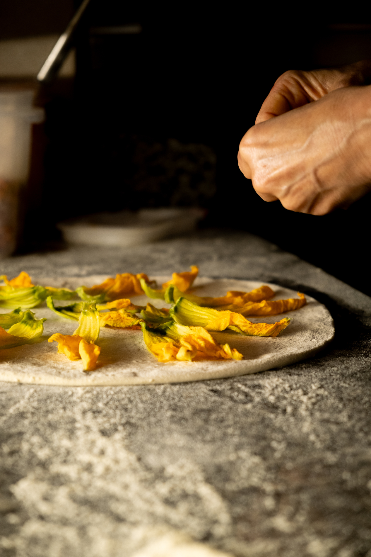 Su especialidad es una pizza italiana redonda de 33 cm, fina, ligeramente crujiente, fermentada durante 30 horas, inspirada en la scrocchiarella romana. Gracias a los ingredientes locales e italianos de alta calidad, el resultado de esto es una base dorada y ligera que se derrite en el paladar. Cada mes sorprenden con una pizza de temporada disponible en versión con carne o pescado, vegetariana y vegana. En agosto, por ejemplo, su pizza con higos, speck y burrata de búfala es todo un éxito.