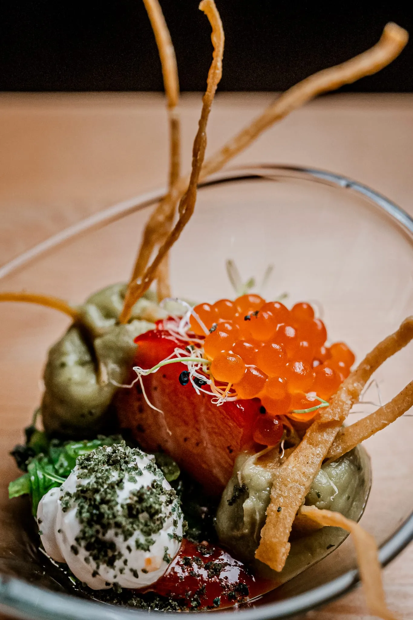 Además, el restaurante ofrece hasta 10 menús degustación exclusivos, incluyendo opciones de carne, pescado, veganas y combinaciones especiales para grupos. El menú estrella, “Calma y Caos Evolution”, es un recorrido de 10 pasos que lleva al comensal desde la calma más delicada hasta el caos más provocador, con platos que sorprenden tanto por su sabor como por su presentación.
