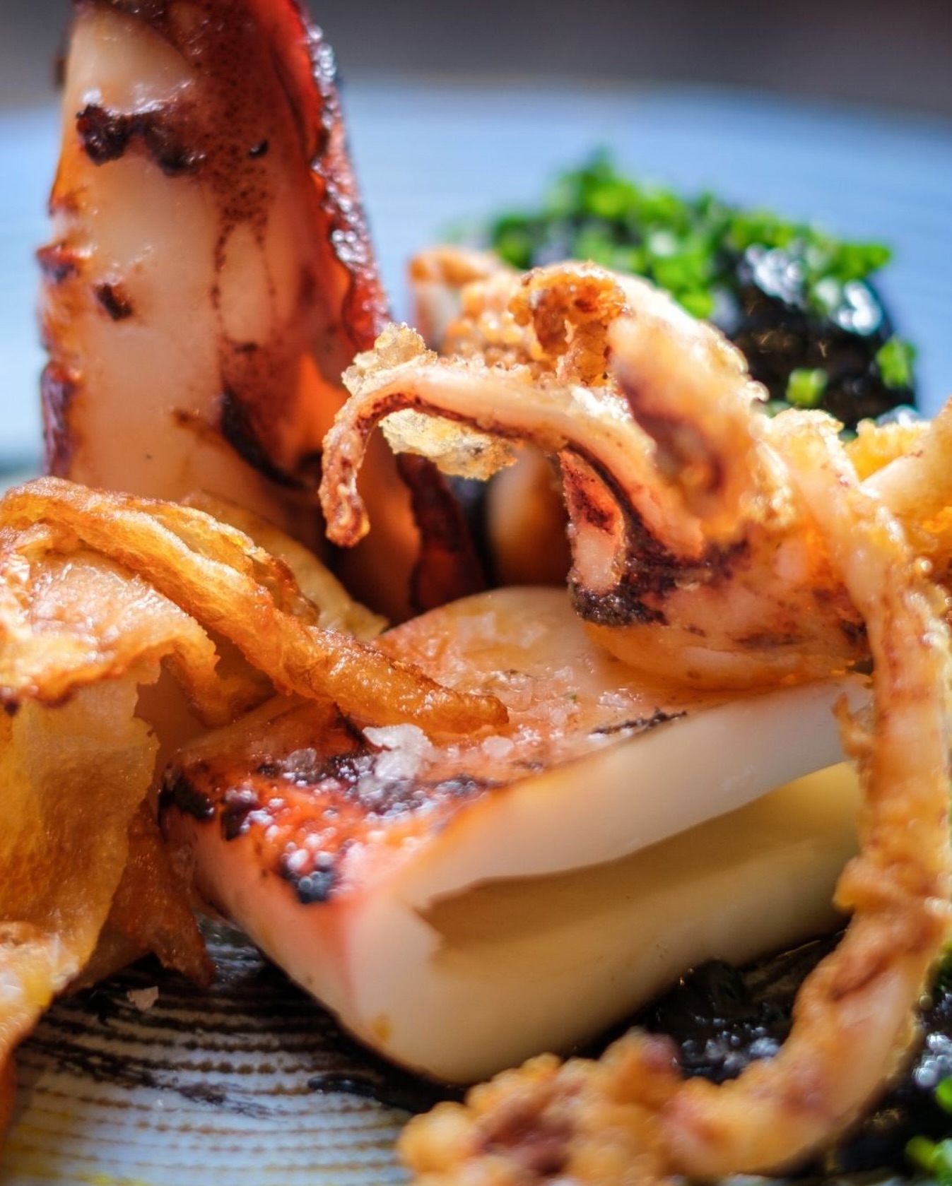Con postres sorprendentes, como el tocinillo de fruta de la pasión con helado de aceite de oliva o el chocolate en texturas con regaliz y naranja, el menú cierra con broche de oro. El café “bombón”, con bizcocho savoiardi y helado de café, eleva la experiencia gourmet.