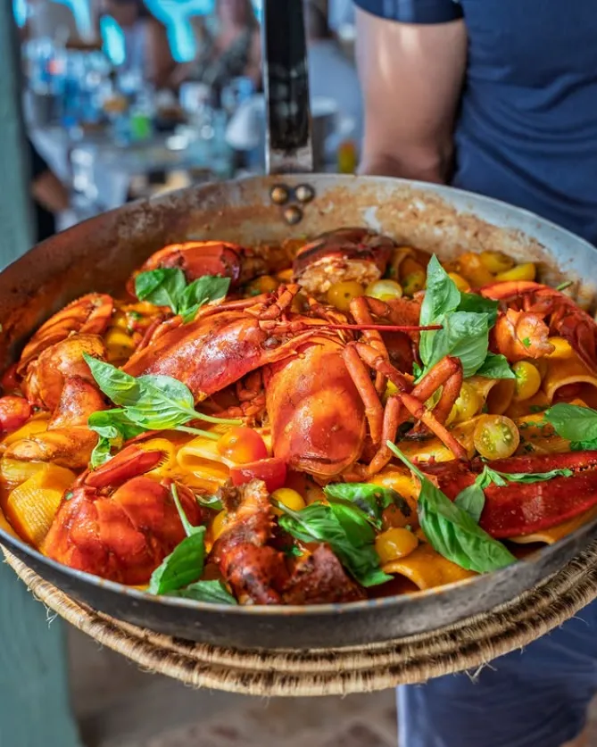 • Pescados y mariscos entre ellos fantásticas langostas, a la brasa y guisados.