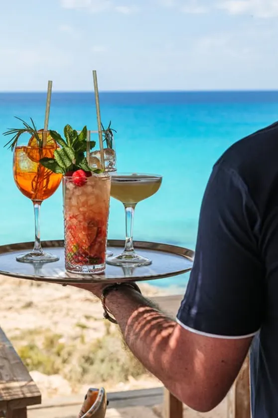 Su encantadora terraza te invita a relajarte mientras disfrutas de un cóctel y música ambiental. Además, son el destino predilecto para la organización de eventos especiales, desde fiestas hasta bodas, rodeados por el mar, la tierra y la naturaleza. Frente a las aguas cristalinas de la playa de Ses Illetes, su espectacular espacio Chill Out ofrece un ambiente relajado con música tranquila y unas vistas privilegiadas al Mediterráneo. Un lugar cuidadosamente diseñado para crear un clima especial donde disfrutar de una gran variedad de bebidas refrescantes, buena compañía y una de las puestas de sol más bonitas de Formentera.