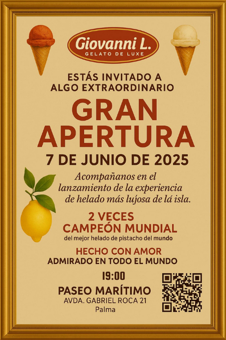 Con presencia internacional y puntos de venta en las Islas Baleares, Giovanni L. Gelato de Luxe invita a locales y visitantes a vivir una experiencia italiana auténtica, donde el helado no es solo un postre, sino un verdadero arte elaborado artesanalmente y con alma local.