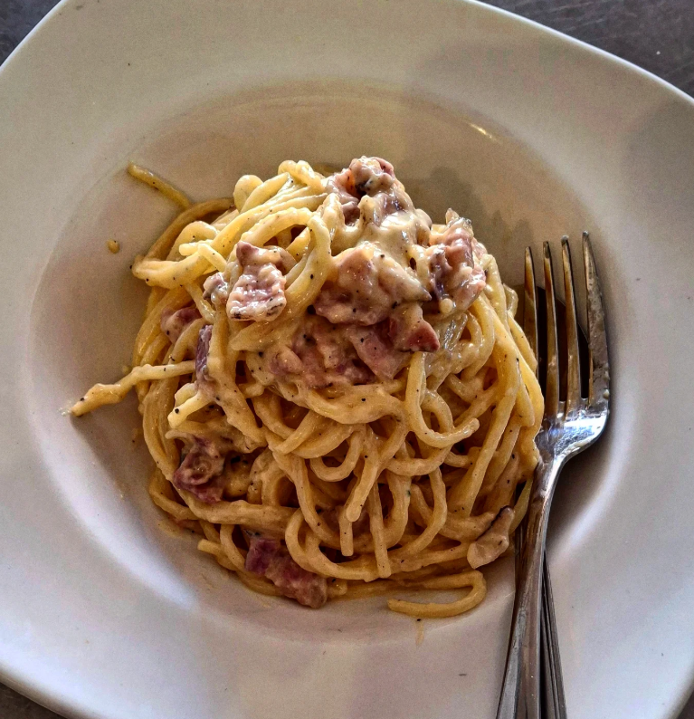 La experiencia comienza con antipasti e insalate irresistibles: carpaccio de carne, bruschettas, vitello tonnato o ensaladas mediterráneas. Continúa con una selección de pastas elaboradas al momento, como los rigatoni a la Norma, las pappardelle con setas de temporada, penne arrabbiata o linguine con mariscos. Platos que combinan tradición y creatividad con un resultado delicioso.