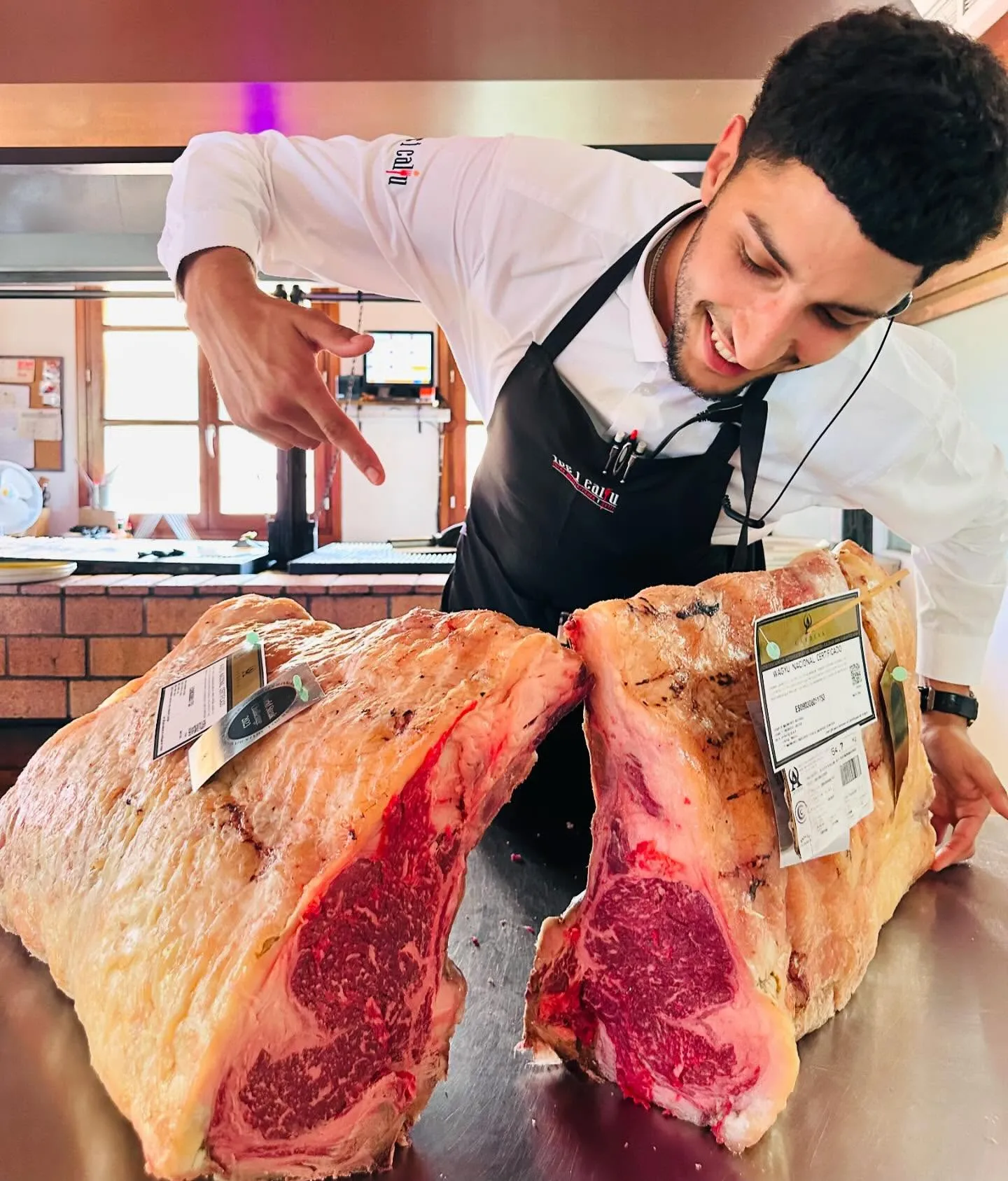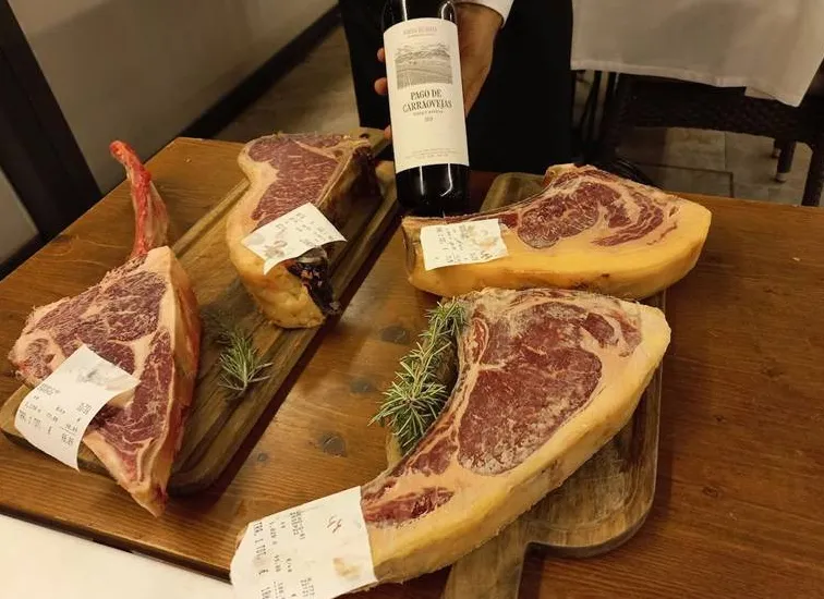 En su moderno restaurante, con amplios espacios y un ambiente elegante, los comensales pueden disfrutar de una propuesta gastronómica única basada en razas puras certificadas, seleccionadas con rigor y maduradas en sus dos cámaras Dry Aged visibles desde el salón. Más de diez razas y cortes diferentes, como la Rubia Gallega, el Tomahawk de cebón gallego, el Buey Tudanco madurado ocho meses, la Simmental alemana, el Hereford, el Wagyu o el Kobe japonés, garantizan una experiencia gourmet incomparable.