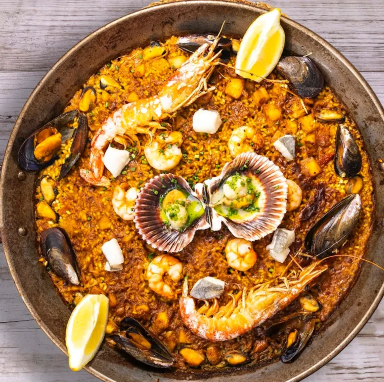 Los amantes de la carne encontrarán opciones irresistibles como el solomillo de ternera con foie o la lechona a baja temperatura con teriyaki de naranjas de Sóller. Quienes prefieren el mar podrán disfrutar de pescados frescos como el gallo de San Pedro con salsa de marisco o el tradicional fish and chips. Y, por supuesto, no faltan las paellas y arroces, un verdadero emblema de la cocina mediterránea.