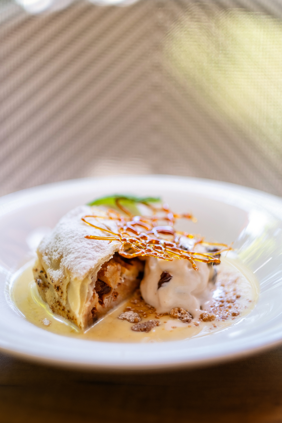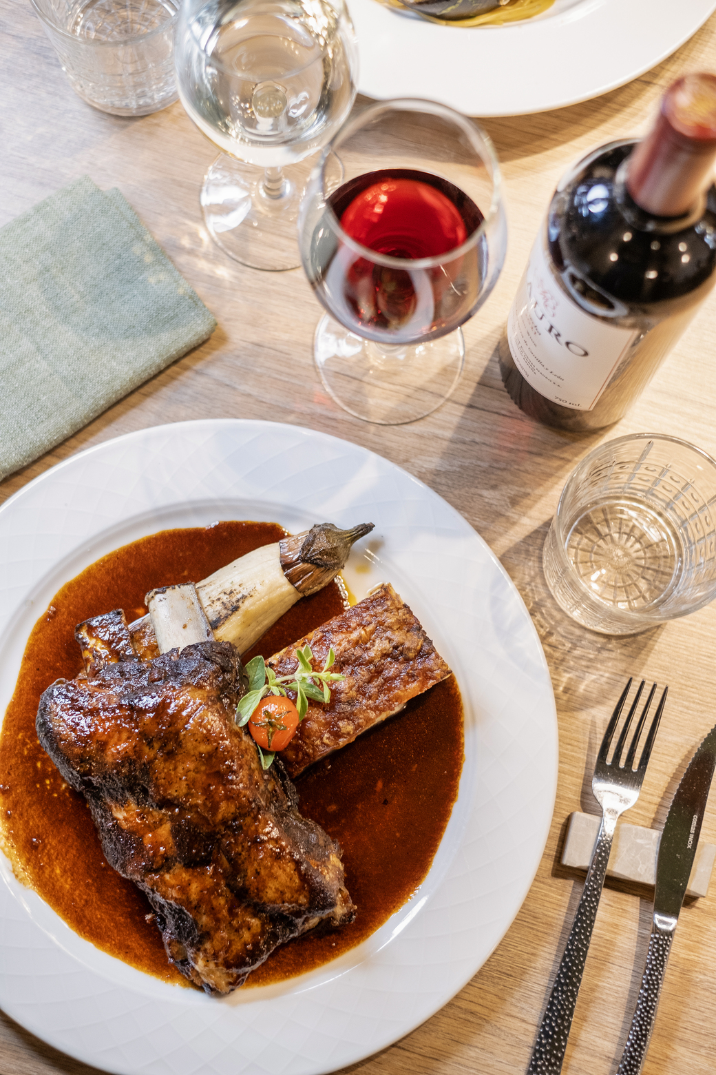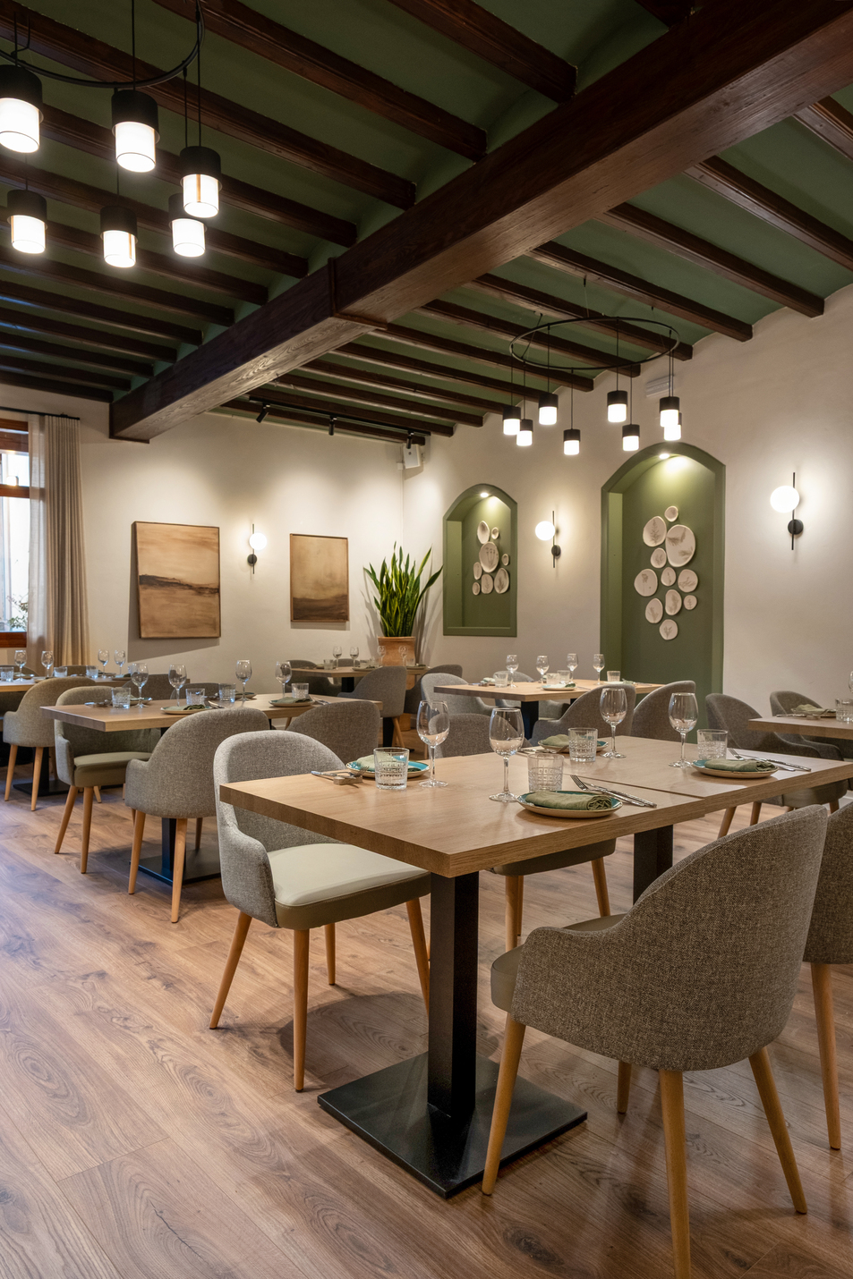 El restaurante dispone de diversos espacios que se adaptan a las preferencias de cada visitante. La terraza exterior es ideal para quienes desean sumergirse en la vida del pintoresco pueblo de Alaró, disfrutando de un ambiente vibrante y acogedor. En el interior, la elegancia del salón principal proporciona un entorno perfecto para degustar las especialidades de la casa en un ambiente más íntimo. Además, una terraza cubierta ofrece vistas relajantes al jardín y la piscina, brindando un rincón de tranquilidad para aquellos que buscan un espacio más sosegado.