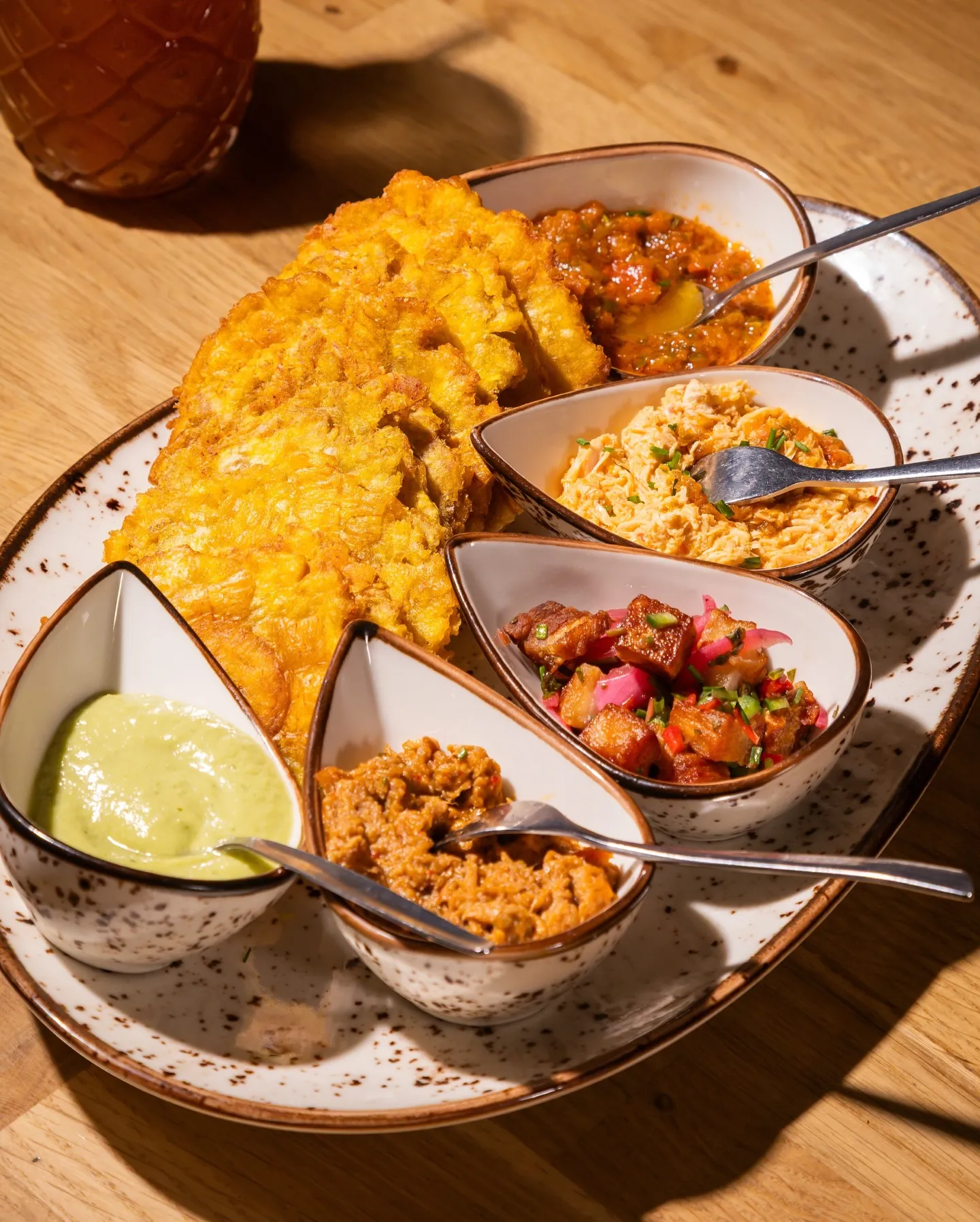 - Patacones: con carne, pollo desmechado o vegetariano por 8€.