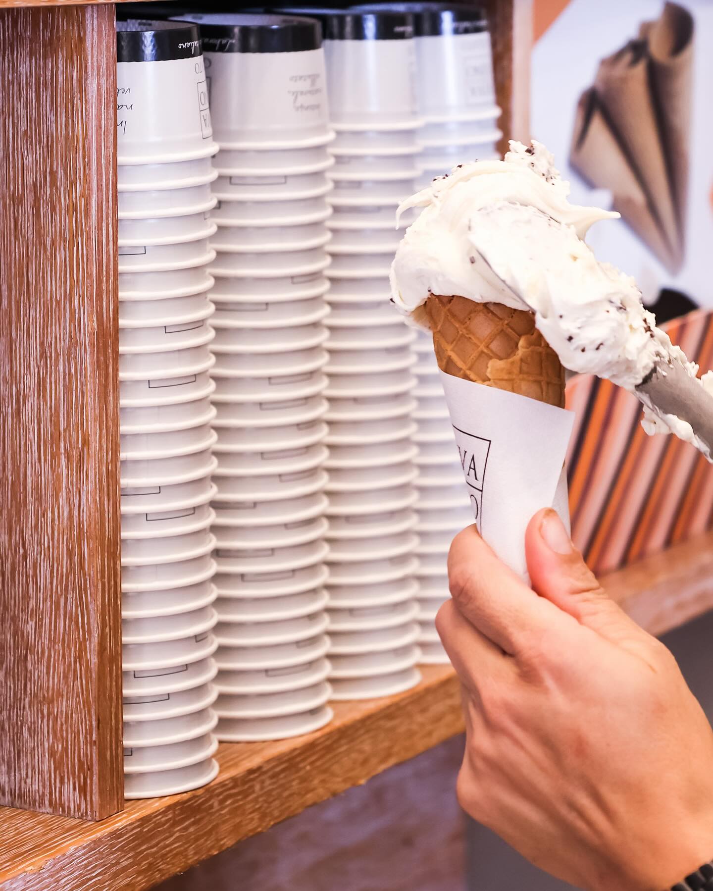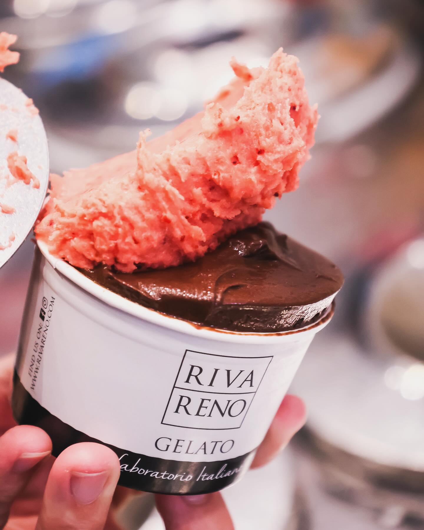 Entre sus especialidades destacan sabores como Cremino Rivareno, Contessa y Chocolate con naranja, que reflejan la pasión y el saber hacer de la heladería. Tambien podrás saborear sus clásicos como el helado de fresa, pistacho, affogato…