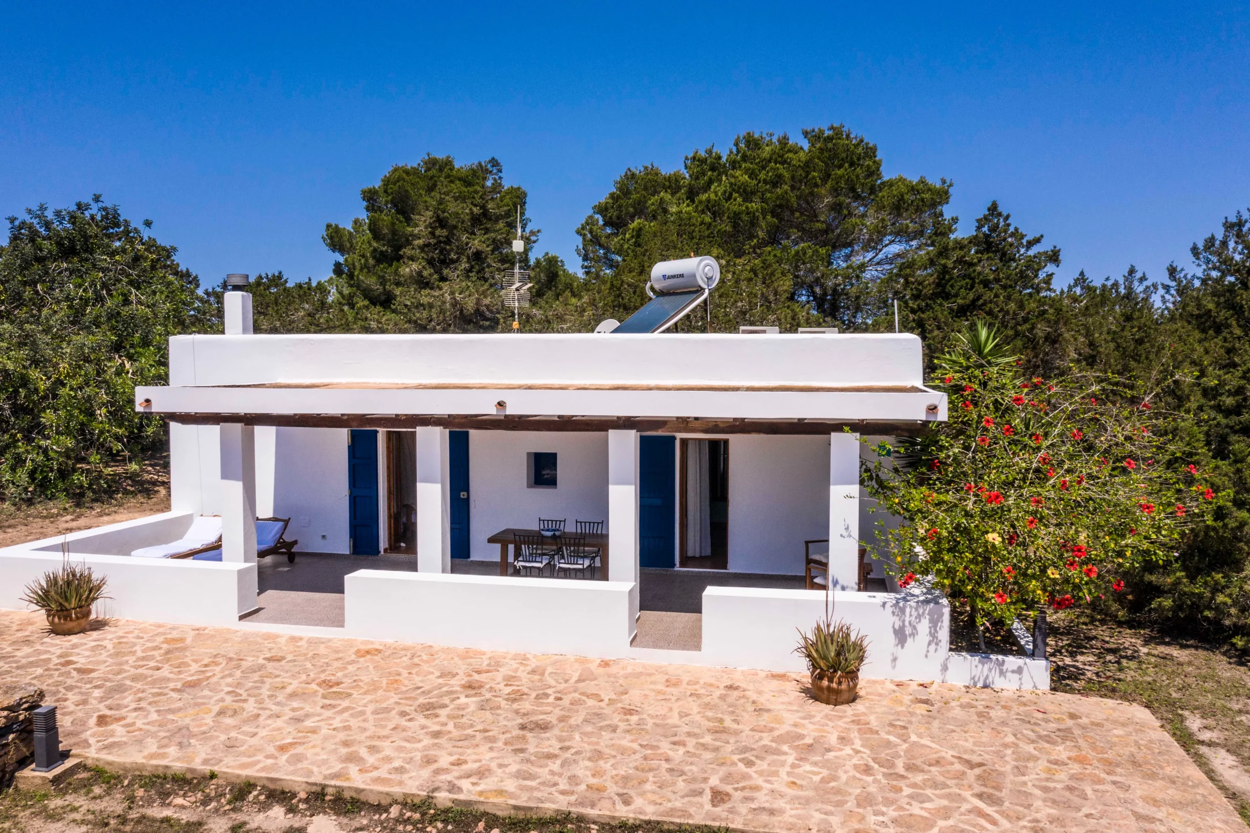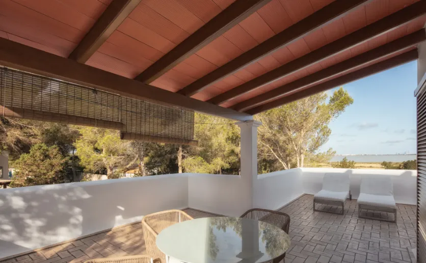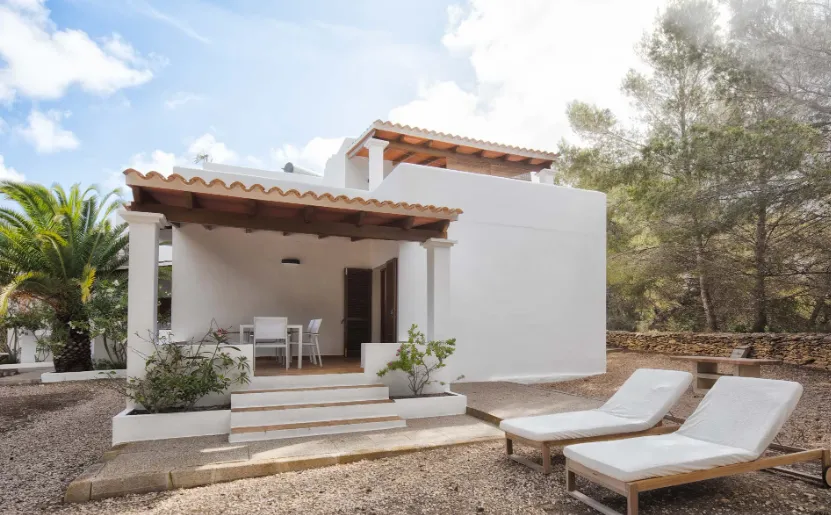 Los alojamientos cuentan con equipamiento completo, que incluye cocinas equipadas, salones acogedores, terrazas y acceso a jardines, proporcionando espacios amplios y funcionales para familias, amigos o grupos que deseen disfrutar de Formentera con total independencia y confort.