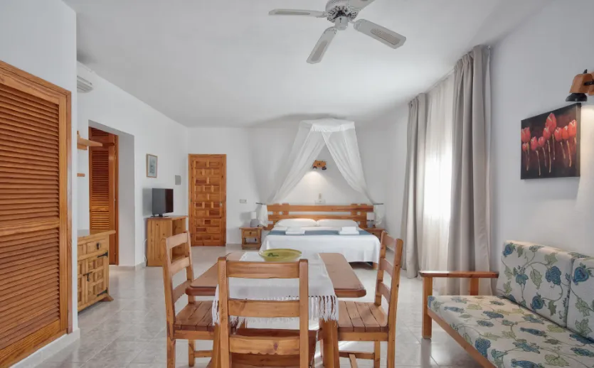 - Apartamento 1 habitación Superior: Capacidad hasta 4 personas, cocina equipada, terraza y jardín compartido, en el Parque Natural de Las Salinas.