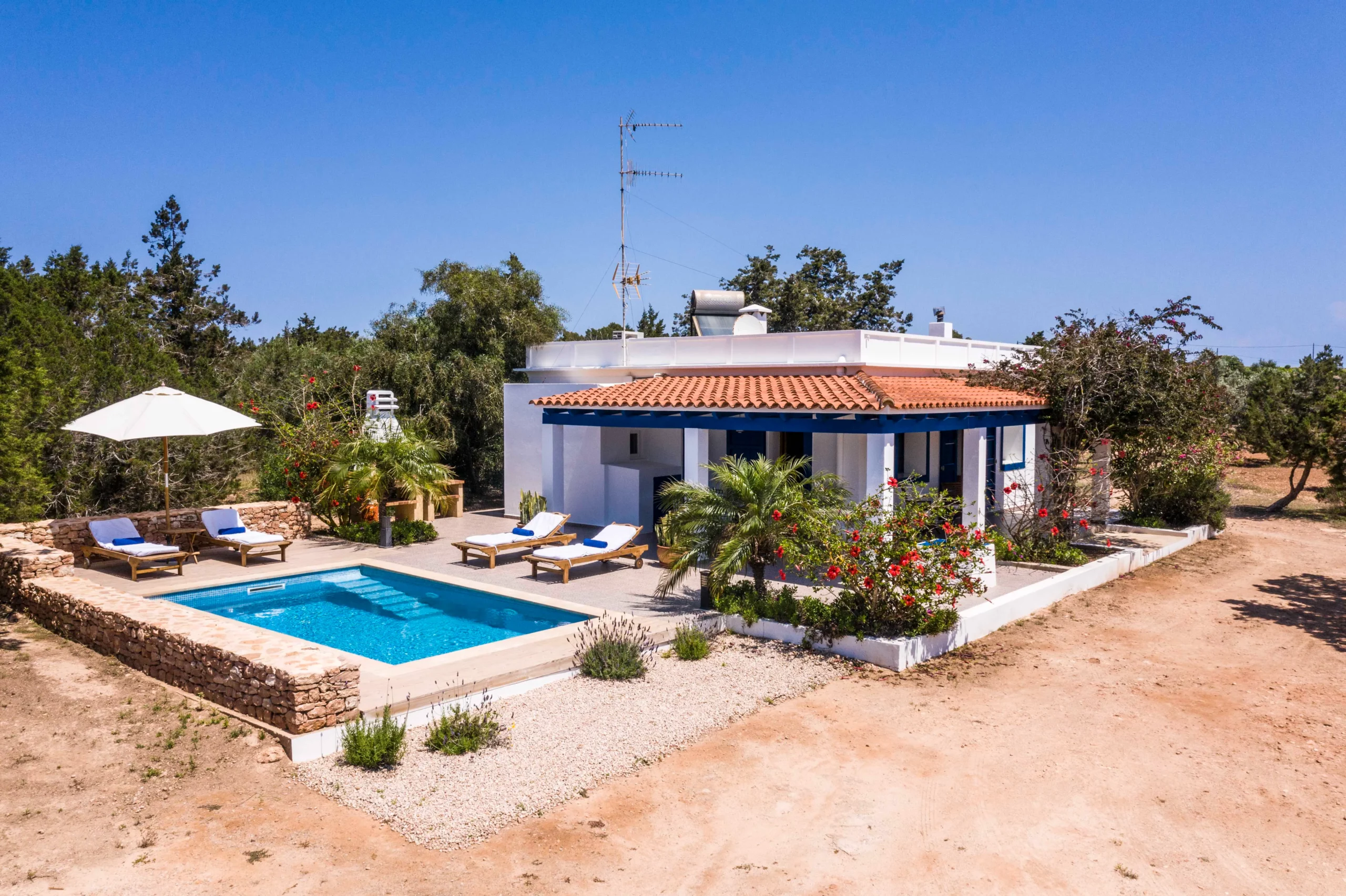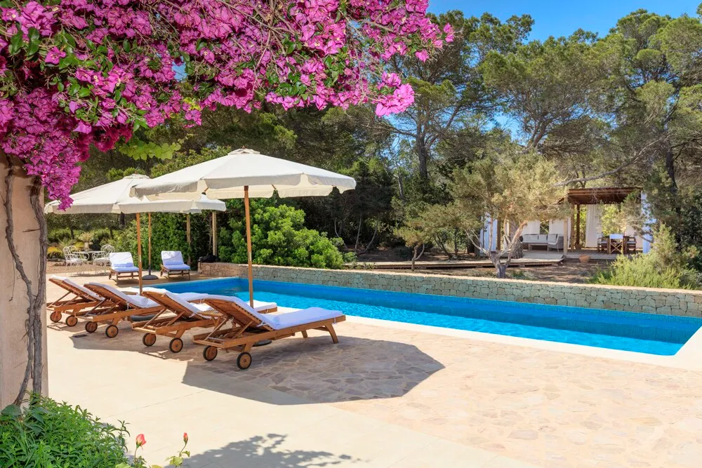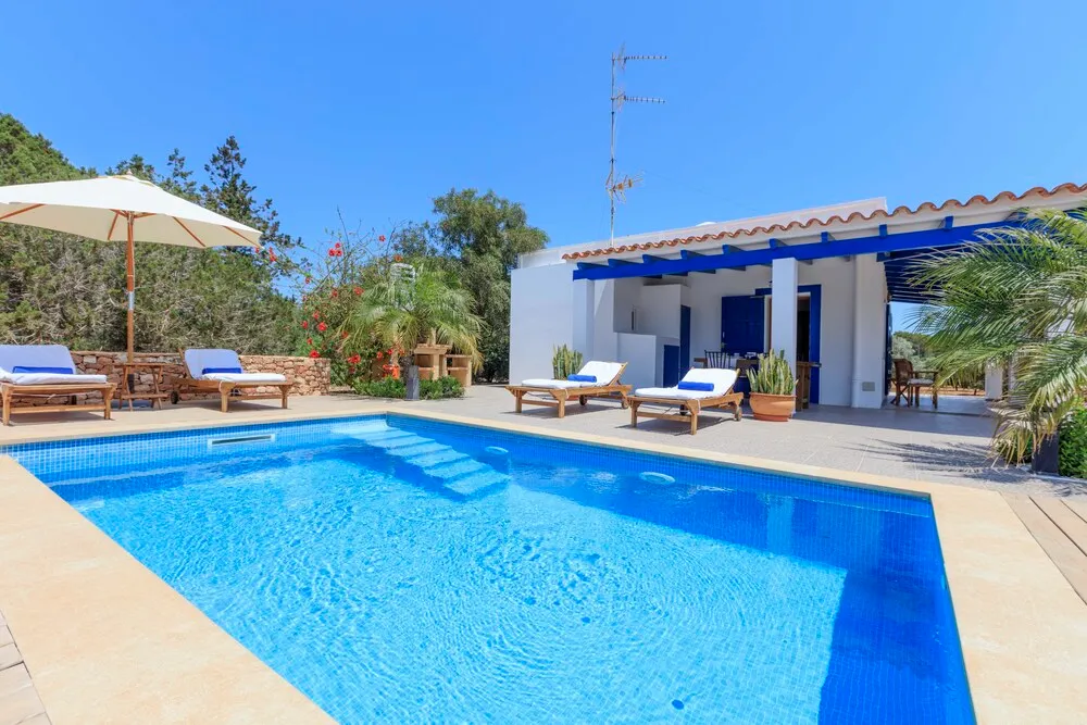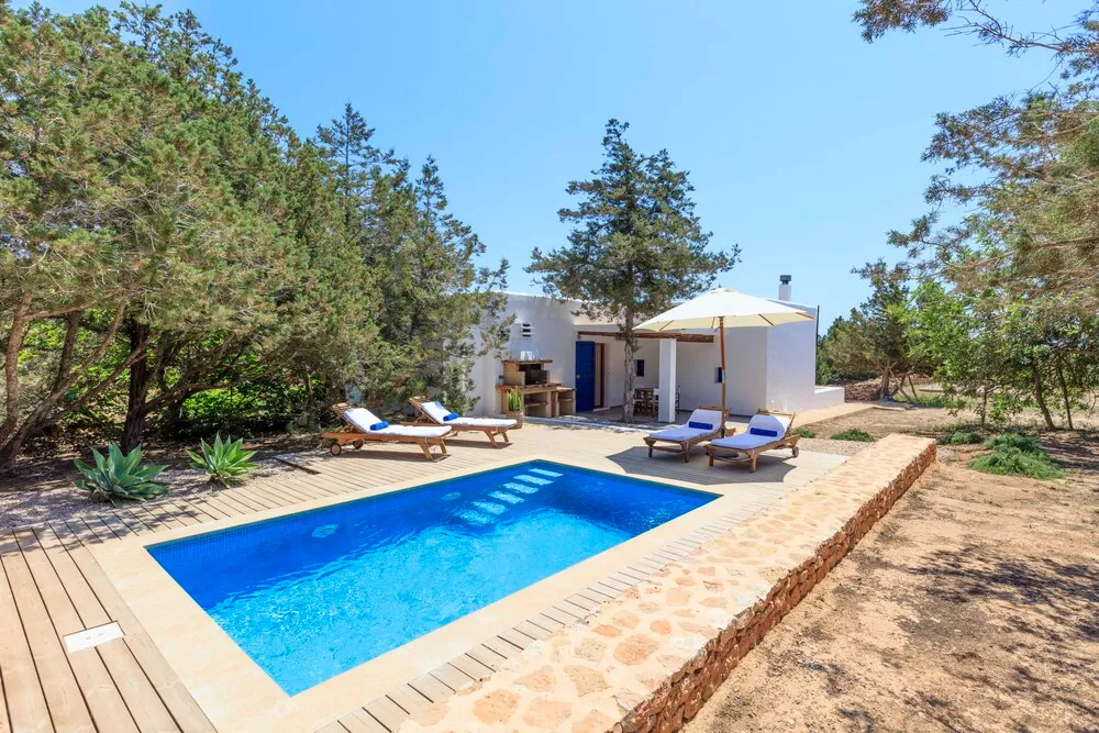 - Villa Can Cardona: 5 habitaciones, capacidad para 12 personas, piscina privada, extenso jardín y acceso directo a la playa Migjorn.