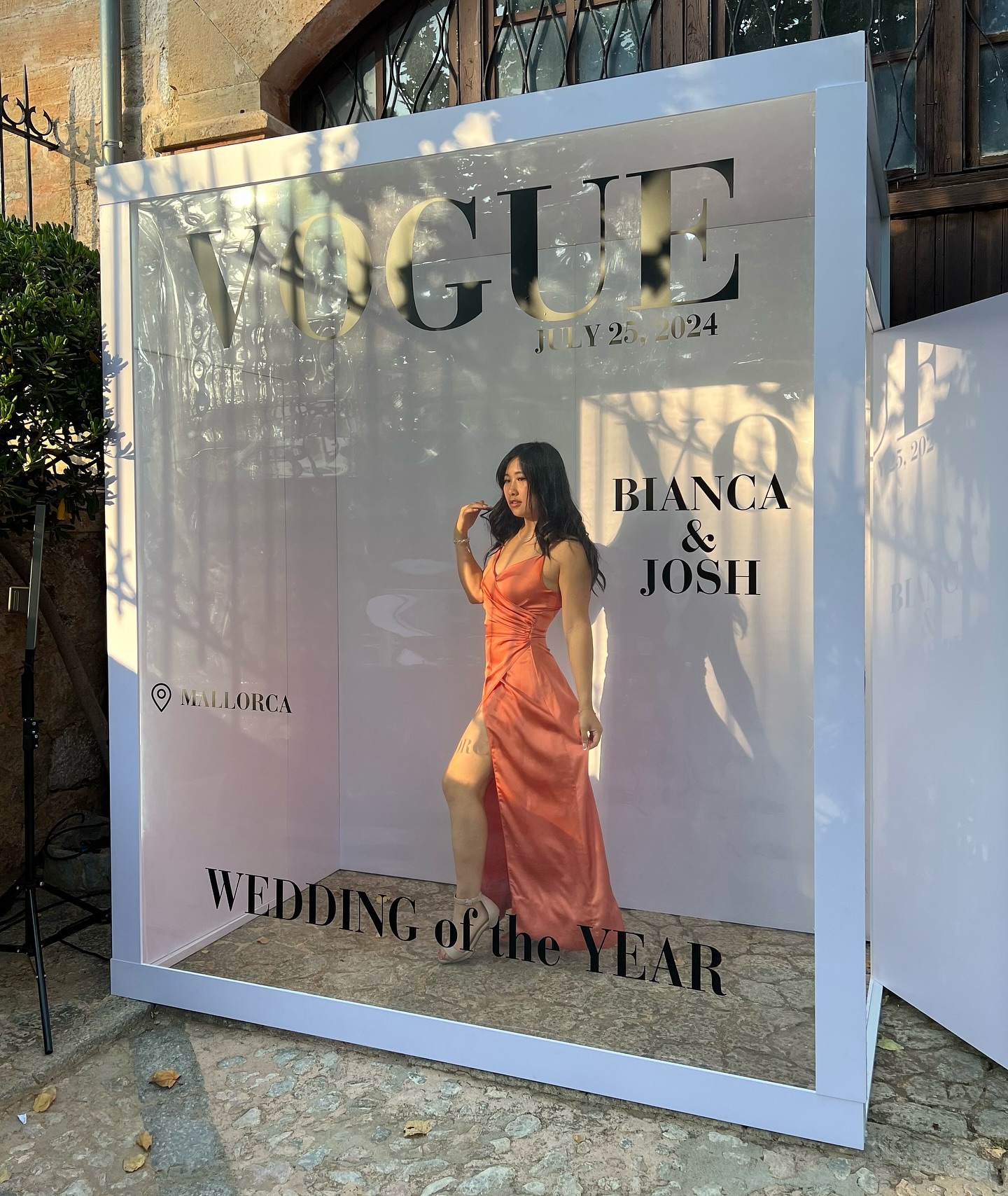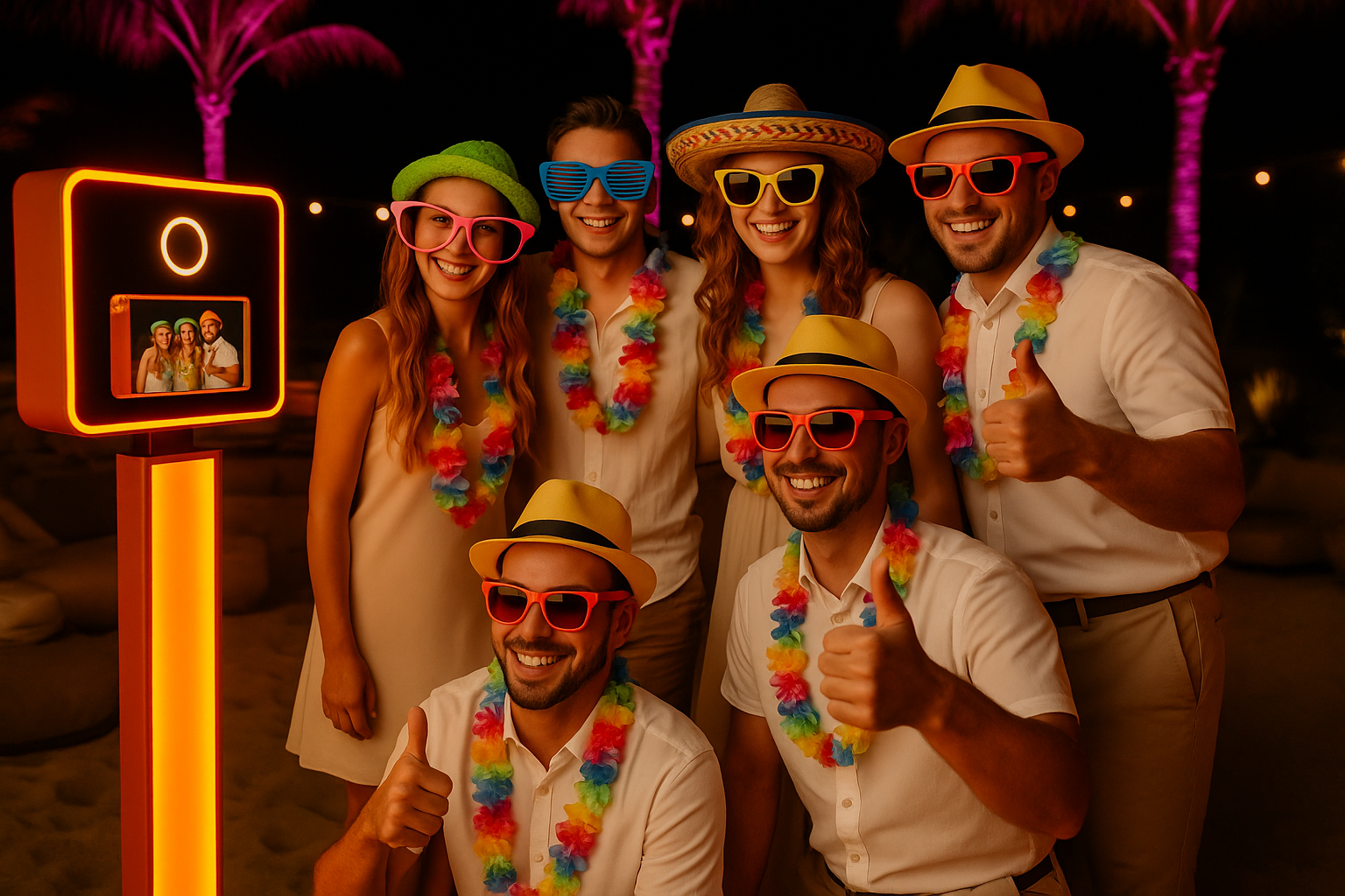 Todos los servicios de fotomatón en Mallorca incluyen montaje, desmontaje, azafatos, plantillas diseñadas a medida y atención cuidada.
