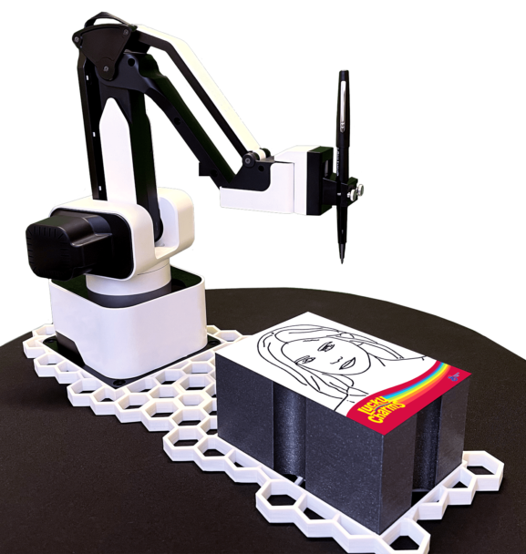El protagonista estrella es Robot Picasso, que crea retratos en directo desde un selfie, generando hasta 60 caricaturas por hora con integración de marca, plantillas personalizadas y atención profesional.