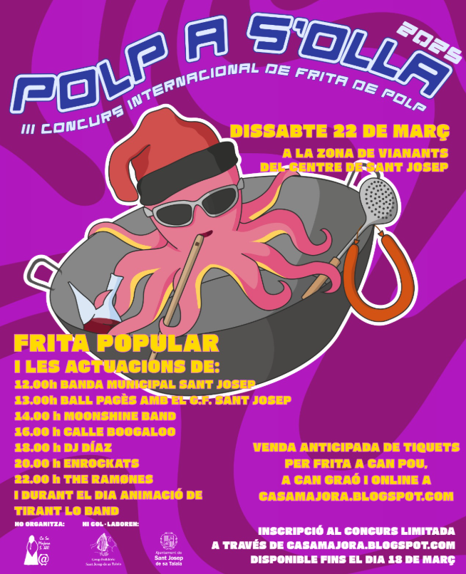 La Frita de Polp de Sant Josep de Sa Talaia vuelve con una nueva edición de su Concurso Internacional, organizado por la Asociación Cultural Ca Sa Majora. Este evento celebra uno de los platos más emblemáticos de la gastronomía ibicenca con una competición culinaria única.