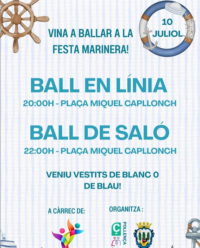 La Festa Marinera en Port de Pollença es un evento que se celebra en la Plaça Miquel Capllonch, con actividades de baile en línea y baile de salón organizadas por grupos locales. La fiesta invita a los asistentes a vestir colores azul o blanco para ambientar la celebración marinera. Es una propuesta abierta para todas las edades, que combina ocio, cultura y tradición en un espacio público. La organización corre a cargo del Área de Bienestar Social, buscando promover la convivencia y el disfrute colectivo en un entorno agradable y accesible.