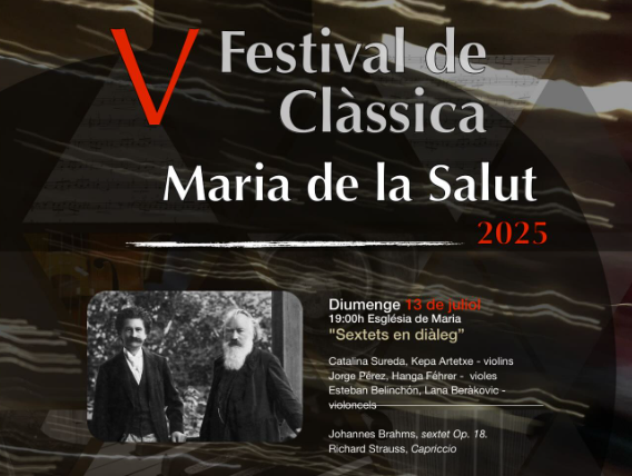 Este domingo 13 de julio a las 19 h comienza el V Festival de Música Clásica de Maria en la Iglesia de Maria de la Salut. En este primer concierto actuará Catalina Sureda, Esteban Belinchon y otros músicos destacados. Todos los conciertos del festival son gratuitos y abiertos a todos los públicos. Disfruta de la mejor música clásica en un entorno único. ¡Te esperamos!