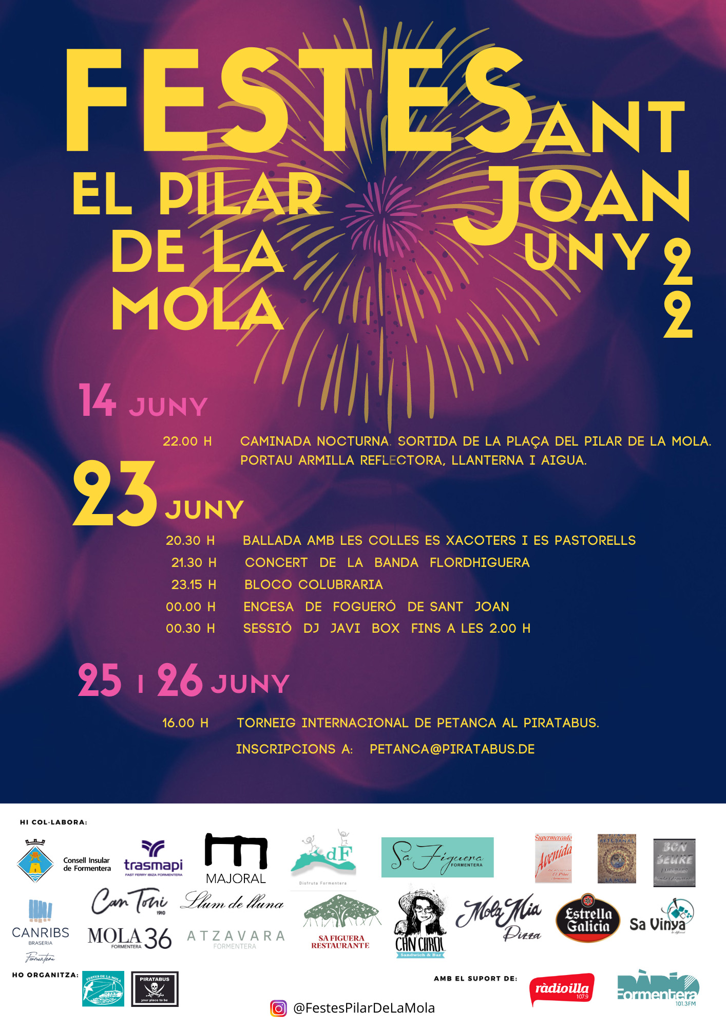 Las fiestas de Sant Joan en Formentera se celebran en El Pilar de la Mola del 23 al 26 de Junio con las siguientes actividades: