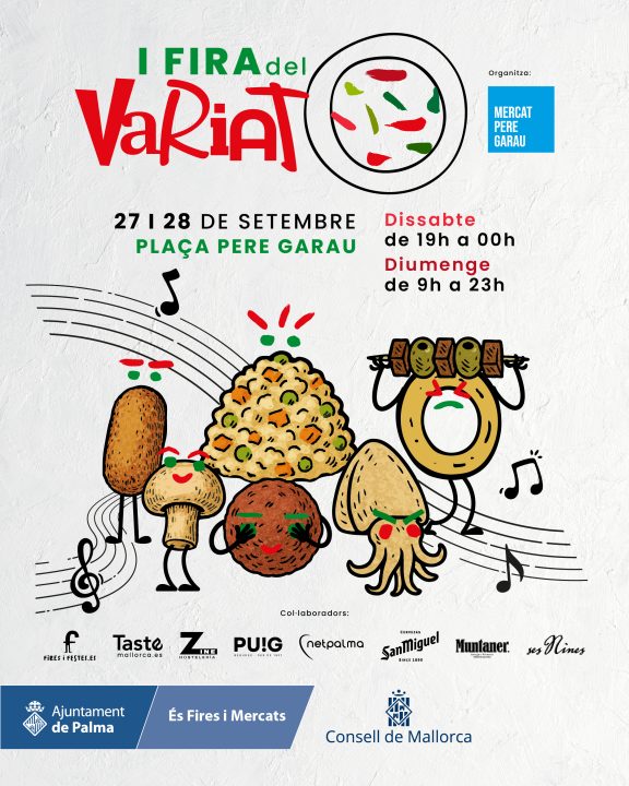 La Fira del Variat Mallorquí es un evento gastronómico y cultural que celebra uno de los platos más emblemáticos de la cocina popular de Mallorca. Durante la feria, la plaza se convierte en un punto de encuentro donde los visitantes pueden degustar diferentes versiones del variat, acompañado de música en directo, animación infantil y baile. La cita ofrece un ambiente festivo que refleja la diversidad y autenticidad de la isla, fomentando la participación de toda la familia. Es una oportunidad para disfrutar de la gastronomía local, conocer la cultura mallorquina y compartir momentos de ocio y diversión en un entorno cercano y acogedor.