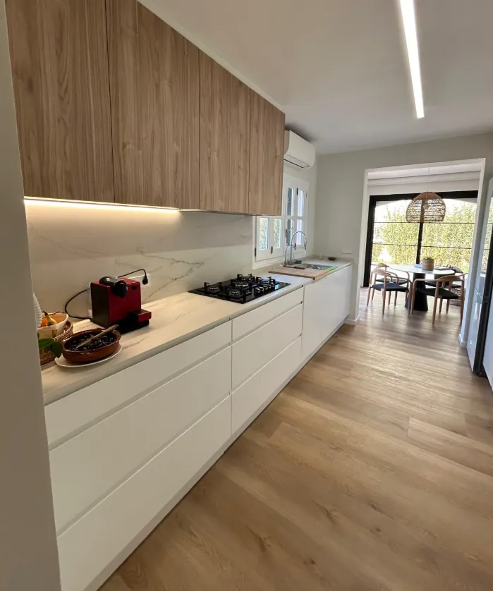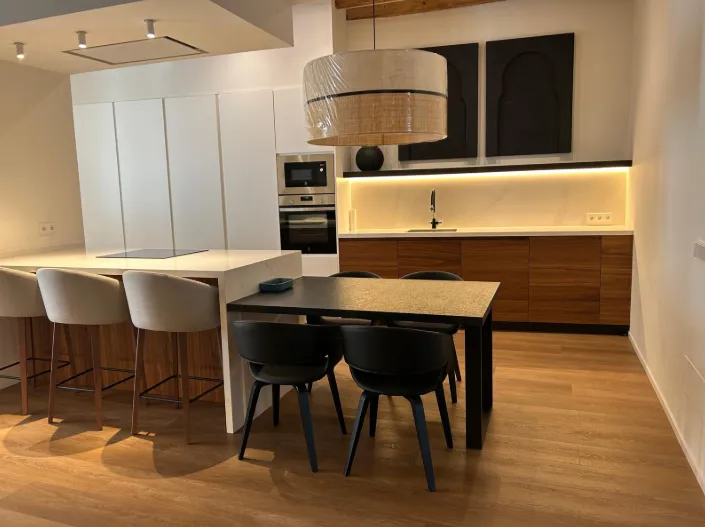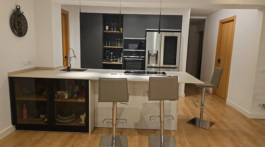 En el área de cocinas a medida, Puertas Palma diseña y monta muebles funcionales, adaptando cada elemento a las necesidades de almacenamiento, ergonomía y estilo del cliente. Además, fabrican armarios y vestidores a medida, optimizando espacios con soluciones personalizadas que combinan practicidad y diseño, desde puertas correderas hasta interiores con múltiples compartimentos.